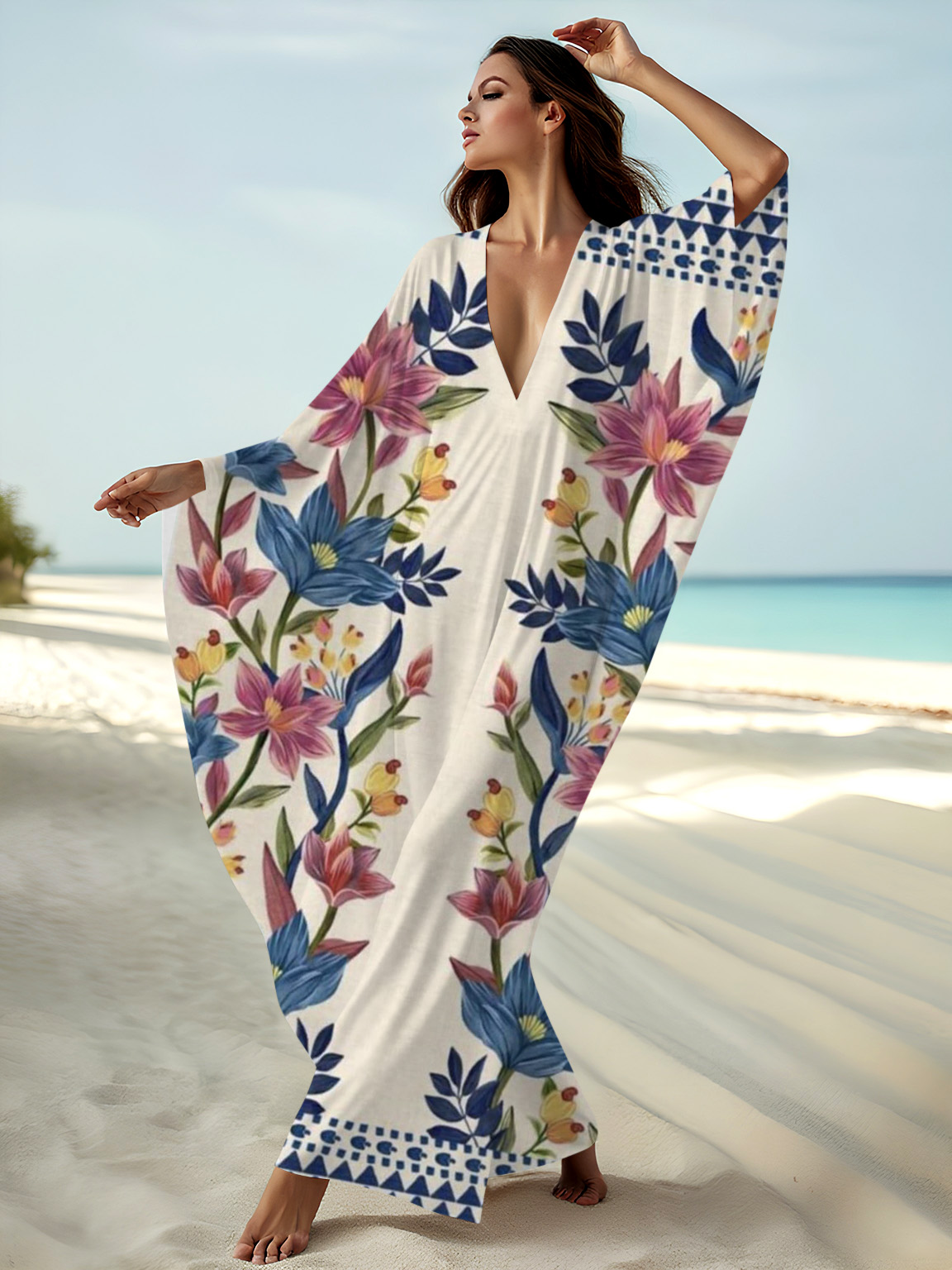 Elegant Women's Cotton and Linen Kaftan - Breathable and Stylish