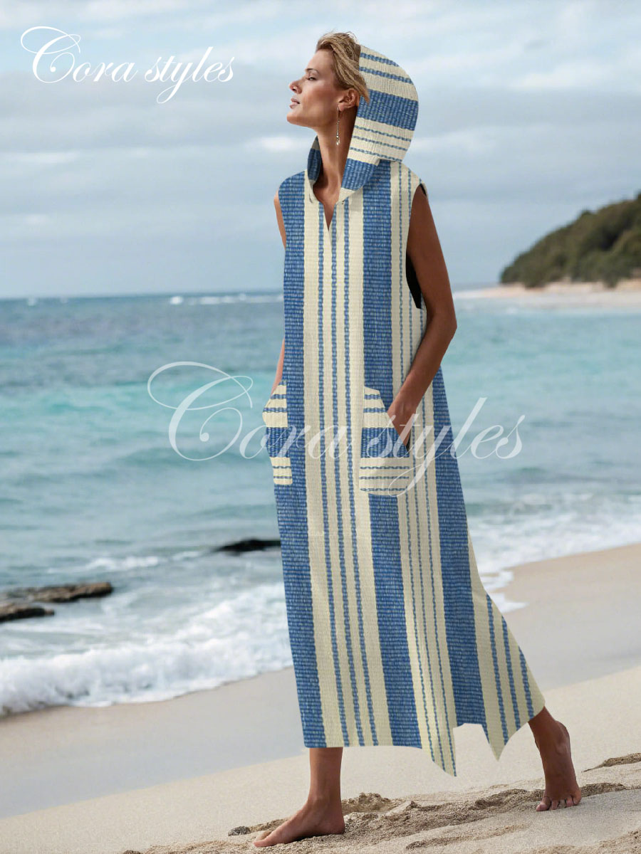 Women's cotton and linen hoodie dress