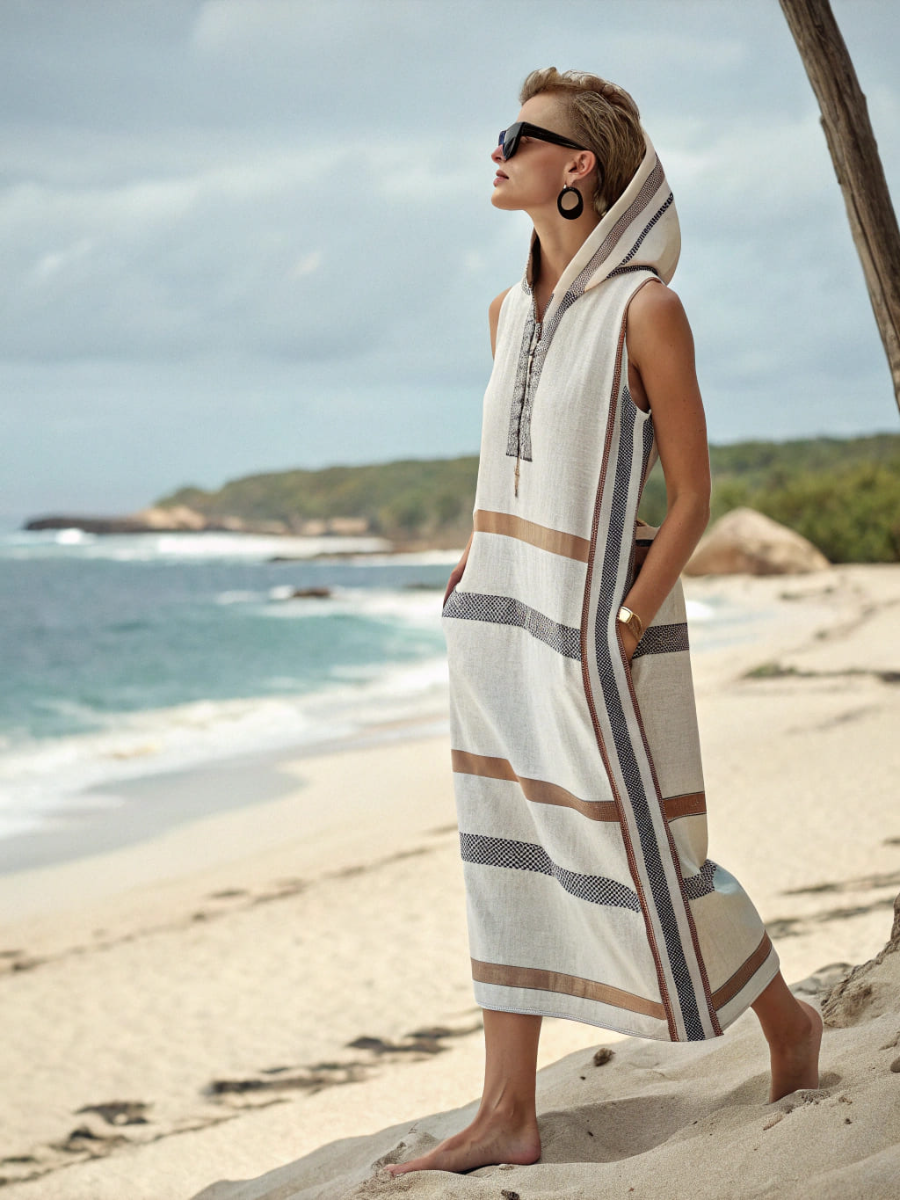 Women's cotton and linen hoodie dress