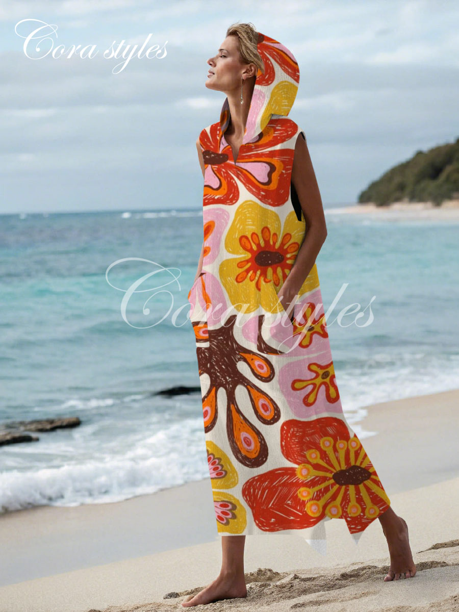 Women's cotton and linen hoodie dress