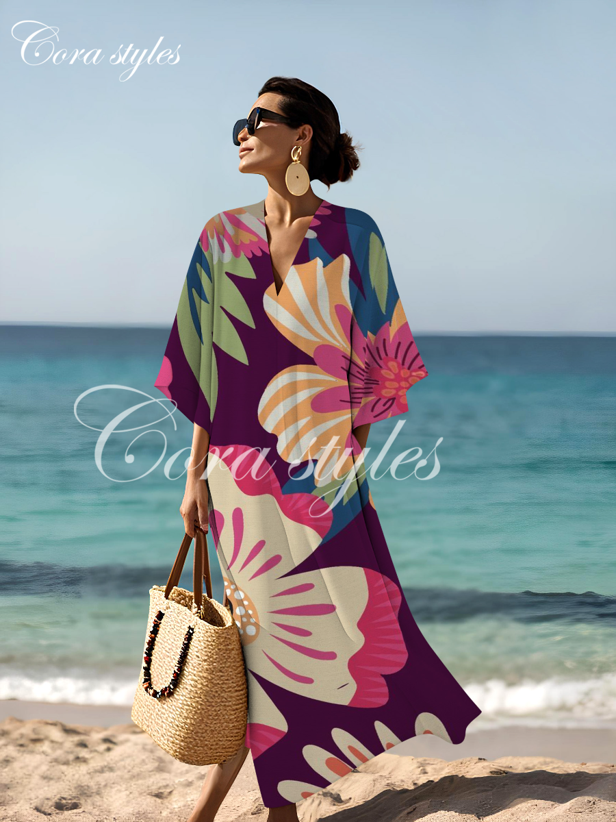 Our premium women's kaftan is carefully crafted from high-quality cotton, linen and polyester blends to bring you the ultimate comfort and effortless elegance. Premium Fabric: Made of breathable cotton and linen blend, it is lightweight and soft for all-day wear. Fashion Print: Embellished with chic and fashionable patterns, it is suitable for any occasion.V-neck Design: The charming V-neck design adds sophistication and elegance. Loose Fit: Smooth and flowing, it allows for ease of movement, and the loose silhouette is suitable for all body types.