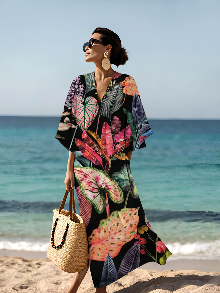 Our premium women's kaftan is carefully crafted from high-quality cotton, linen and polyester blends to bring you the ultimate comfort and effortless elegance. Premium Fabric: Made of breathable cotton and linen blend, it is lightweight and soft for all-day wear. Fashion Print: Embellished with chic and fashionable patterns, it is suitable for any occasion.V-neck Design: The charming V-neck design adds sophistication and elegance. Loose Fit: Smooth and flowing, it allows for ease of movement, and the loose silhouette is suitable for all body types.