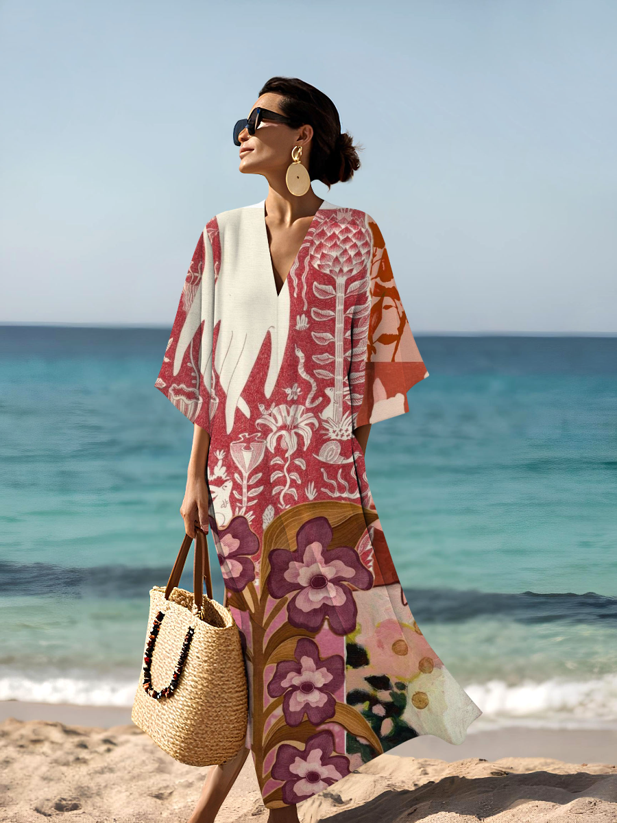 Our premium women's kaftan is carefully crafted from high-quality cotton, linen and polyester blends to bring you the ultimate comfort and effortless elegance. Premium Fabric: Made of breathable cotton and linen blend, it is lightweight and soft for all-day wear. Fashion Print: Embellished with chic and fashionable patterns, it is suitable for any occasion.V-neck Design: The charming V-neck design adds sophistication and elegance. Loose Fit: Smooth and flowing, it allows for ease of movement, and the loose silhouette is suitable for all body types.