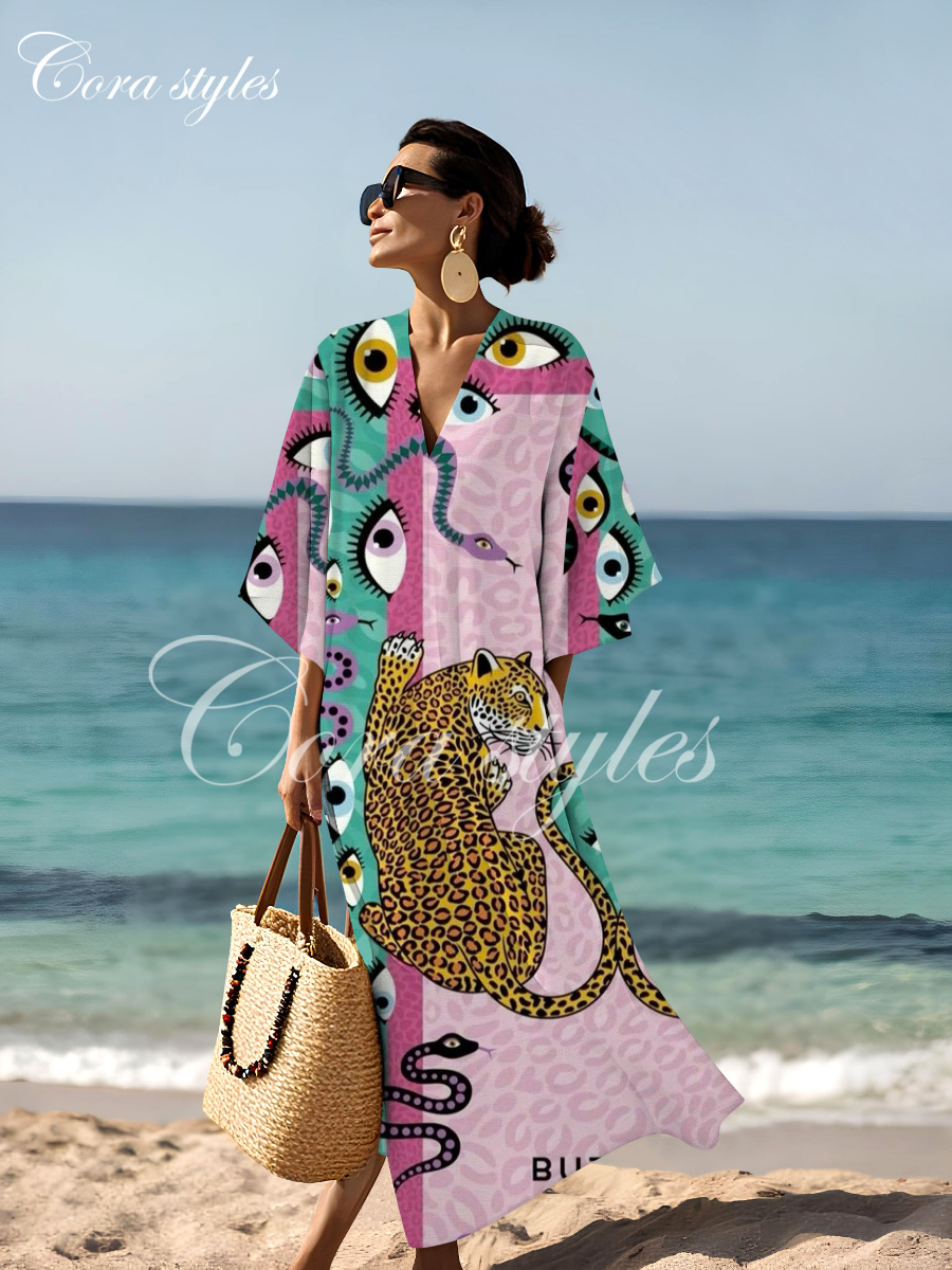 Our premium women's kaftan is carefully crafted from high-quality cotton, linen and polyester blends to bring you the ultimate comfort and effortless elegance. Premium Fabric: Made of breathable cotton and linen blend, it is lightweight and soft for all-day wear. Fashion Print: Embellished with chic and fashionable patterns, it is suitable for any occasion.V-neck Design: The charming V-neck design adds sophistication and elegance. Loose Fit: Smooth and flowing, it allows for ease of movement, and the loose silhouette is suitable for all body types.