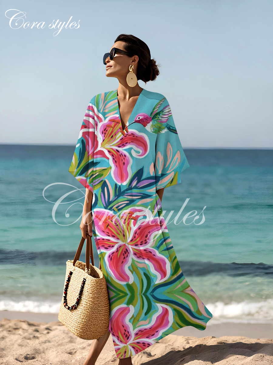 Our premium women's kaftan is carefully crafted from high-quality cotton, linen and polyester blends to bring you the ultimate comfort and effortless elegance. Premium Fabric: Made of breathable cotton and linen blend, it is lightweight and soft for all-day wear. Fashion Print: Embellished with chic and fashionable patterns, it is suitable for any occasion.V-neck Design: The charming V-neck design adds sophistication and elegance. Loose Fit: Smooth and flowing, it allows for ease of movement, and the loose silhouette is suitable for all body types.
