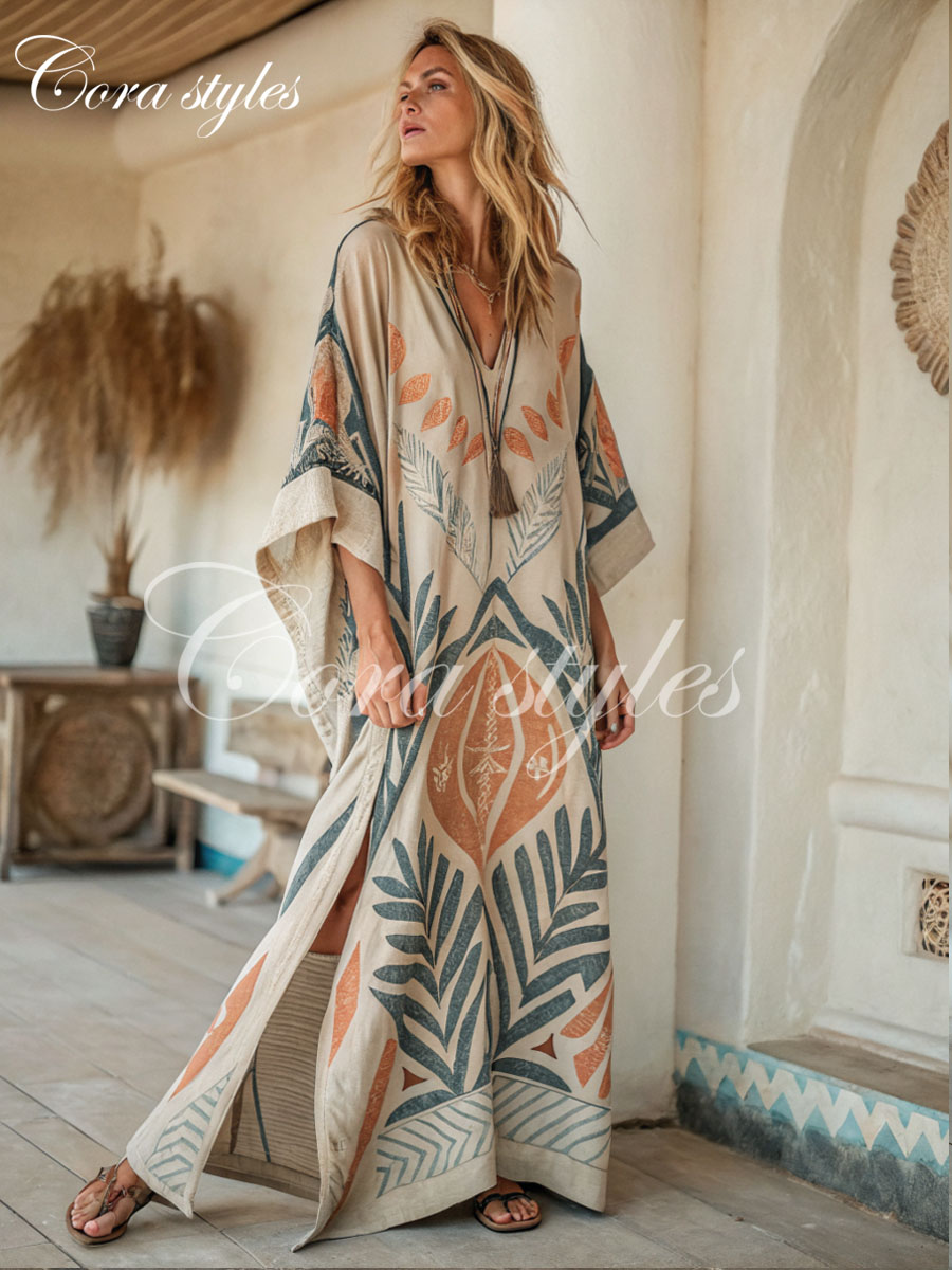 Our premium women's kaftan is carefully crafted from high-quality cotton, linen and polyester blends to bring you the ultimate comfort and effortless elegance.Premium Fabric: Made of breathable cotton and linen blend, it is lightweight and soft for all-day wear. Fashion Print: Embellished with chic and fashionable patterns, it is suitable for any occasion.V-neck Design: The charming V-neck design adds sophistication and elegance. Loose Fit: Smooth and flowing, it allows for ease of movement, and the loose silhouette is suitable for all body types.