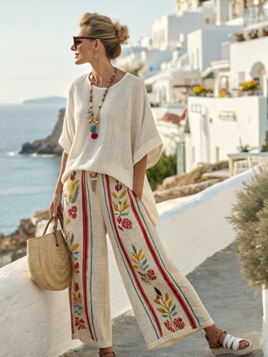 Style: The top is designed with a loose version, which shows a lazy and casual attitude when worn; the matching wide-leg pants have smooth lines, which are convenient for activities and can visually lengthen the leg proportions. The whole set of clothing is full of the relaxed atmosphere of leisure vacation, comfortable and fashionable.
