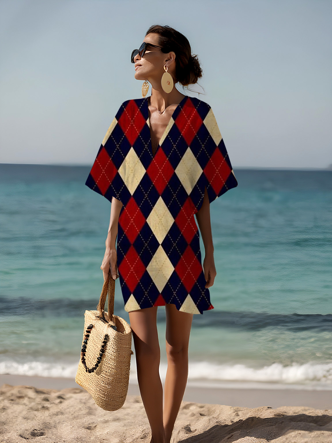 Summer Vacation Printed Cotton and Linen Women's V-Neck Short Skirt