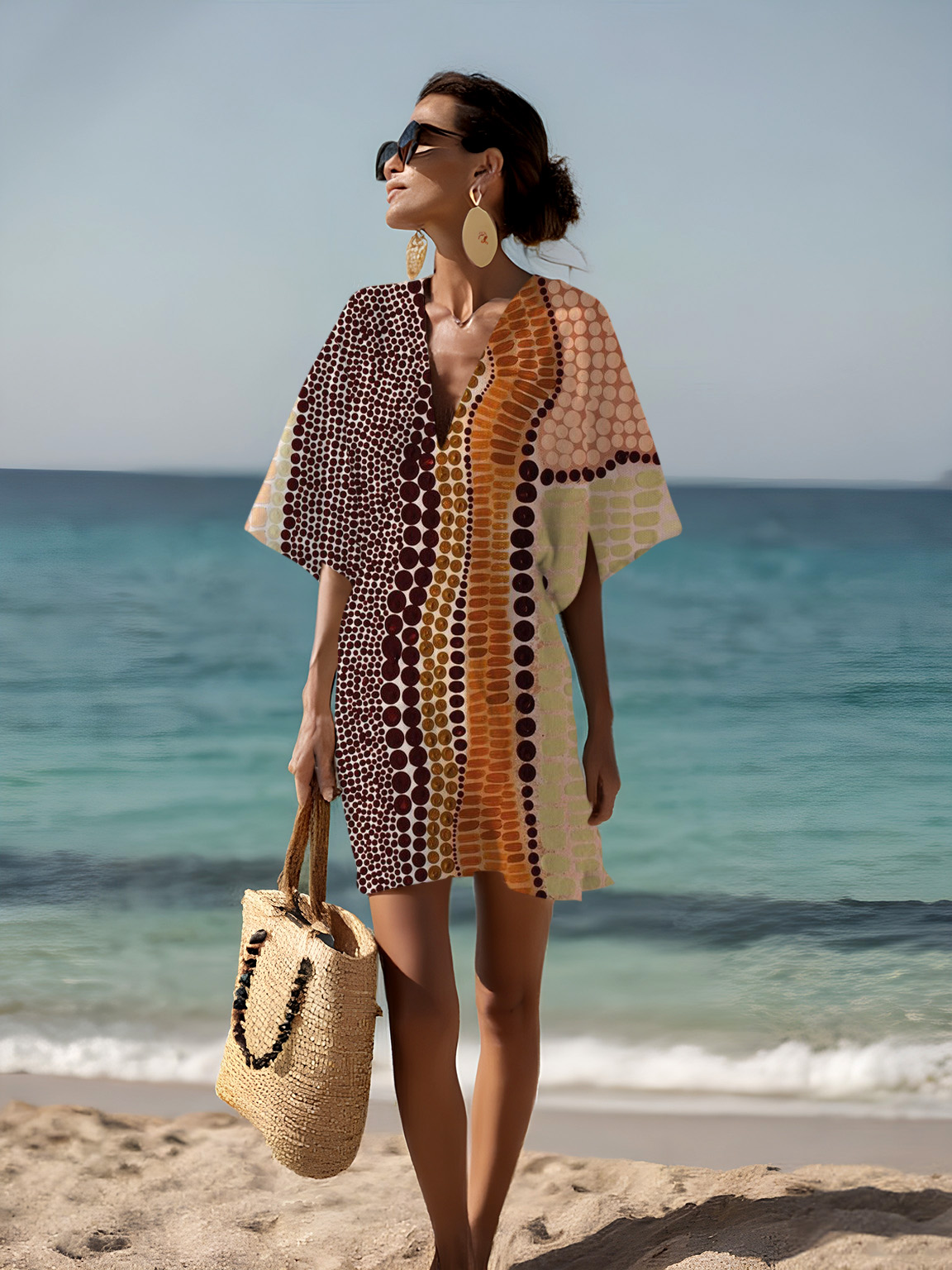 Summer Vacation Printed Cotton and Linen Women's V-Neck Short Skirt