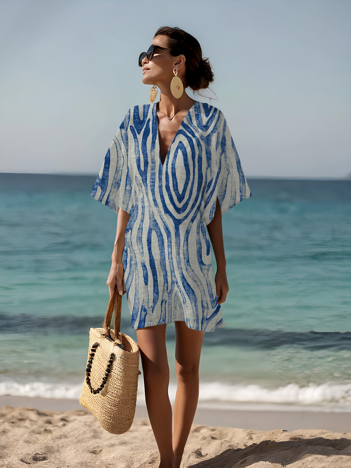 Summer Vacation Printed Cotton and Linen Women's V-Neck Short Skirt