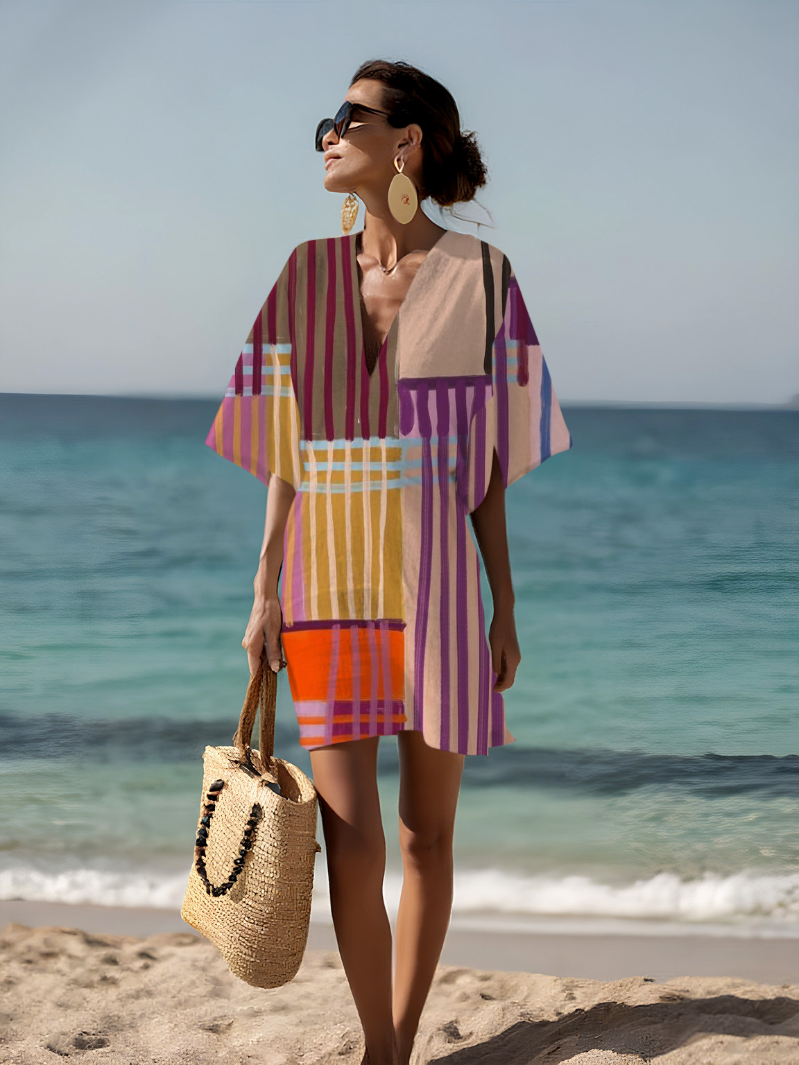 Summer Vacation Printed Cotton and Linen Women's V-Neck Short Skirt
