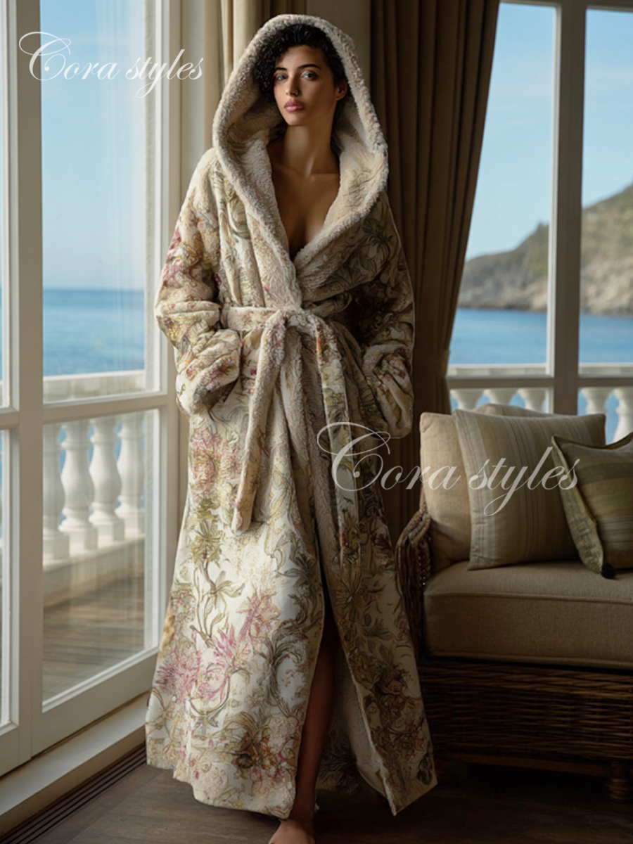 Women's Autumn and Winter Cotton Velvet Blended Robe (With Belt)
