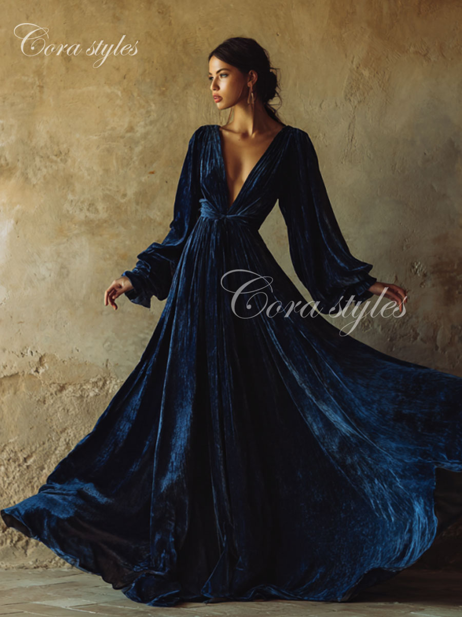 Women's autumn and winter gold velvet blend dress
