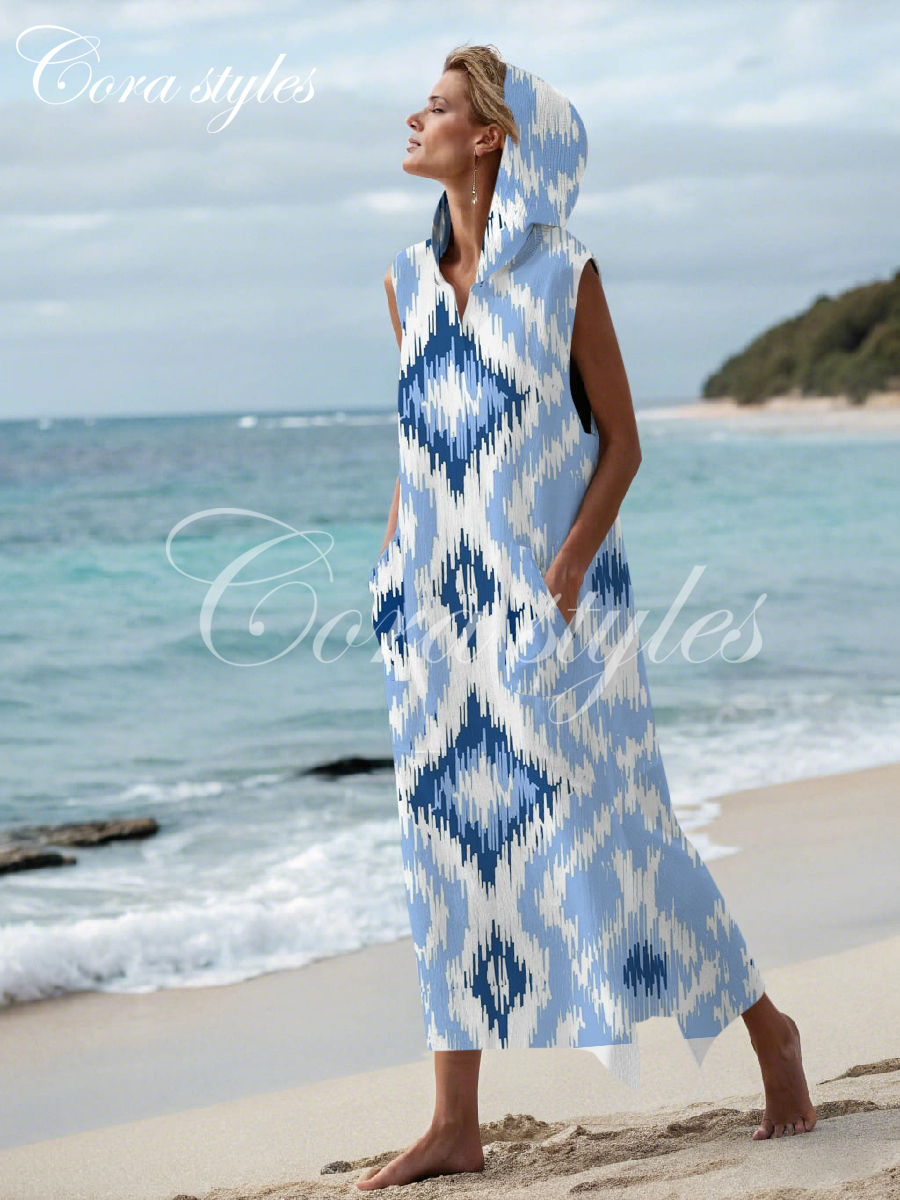 Women's cotton and linen hoodie dress