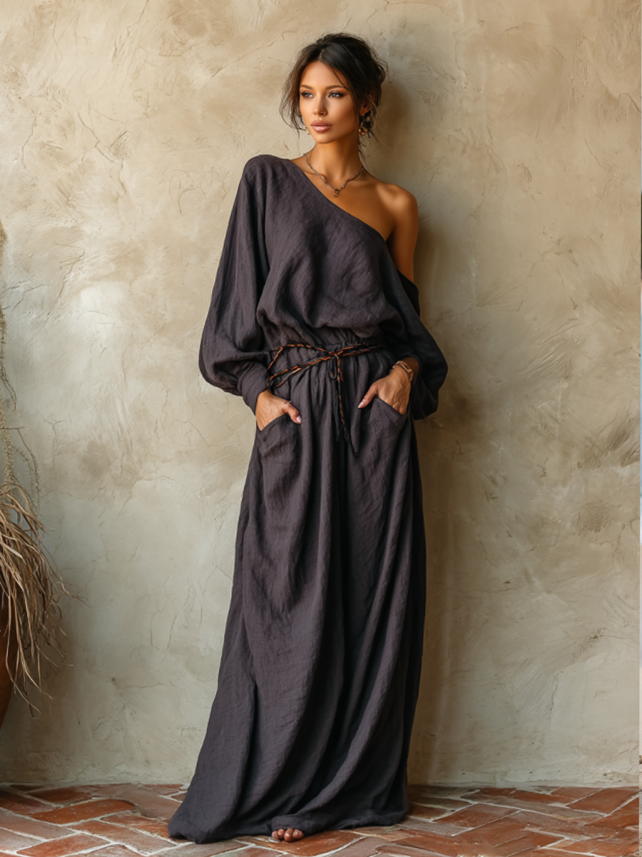 Women's cotton one-shoulder design comfortable casual winter maxi skirt