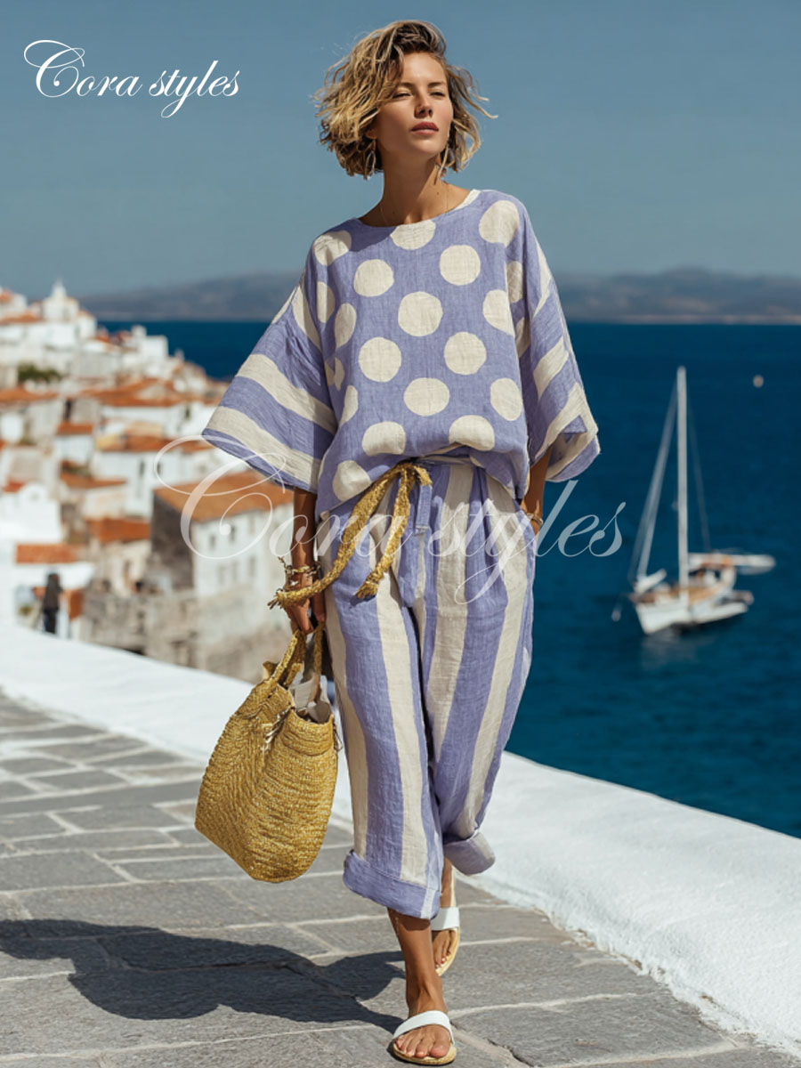 Style: The top is designed with a loose version, which shows a lazy and casual attitude when worn; the matching wide-leg pants have smooth lines, which are convenient for activities and can visually lengthen the leg proportions. The whole set of clothing is full of the relaxed atmosphere of leisure vacation, comfortable and fashionable.