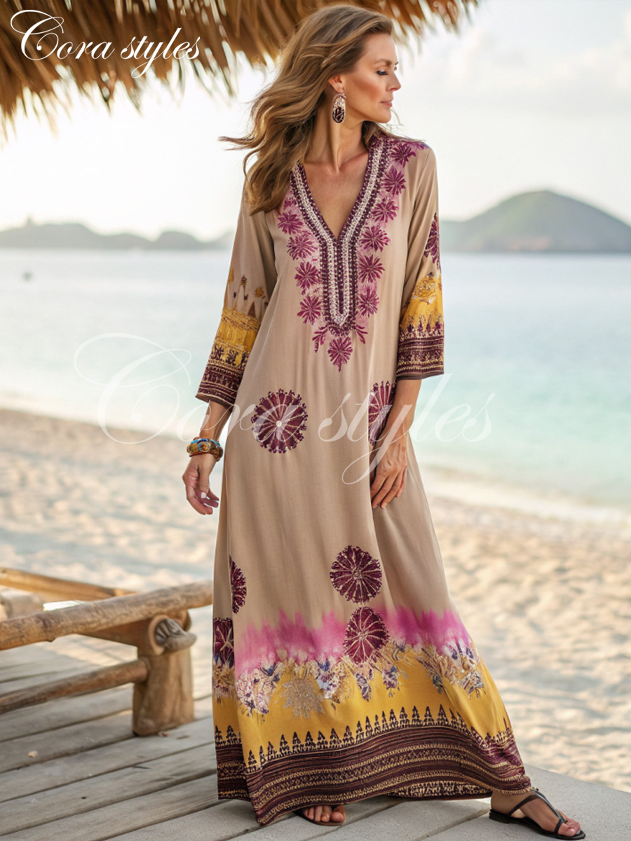 Women's Linen Vacation Loose Bohemian Maxi Dress